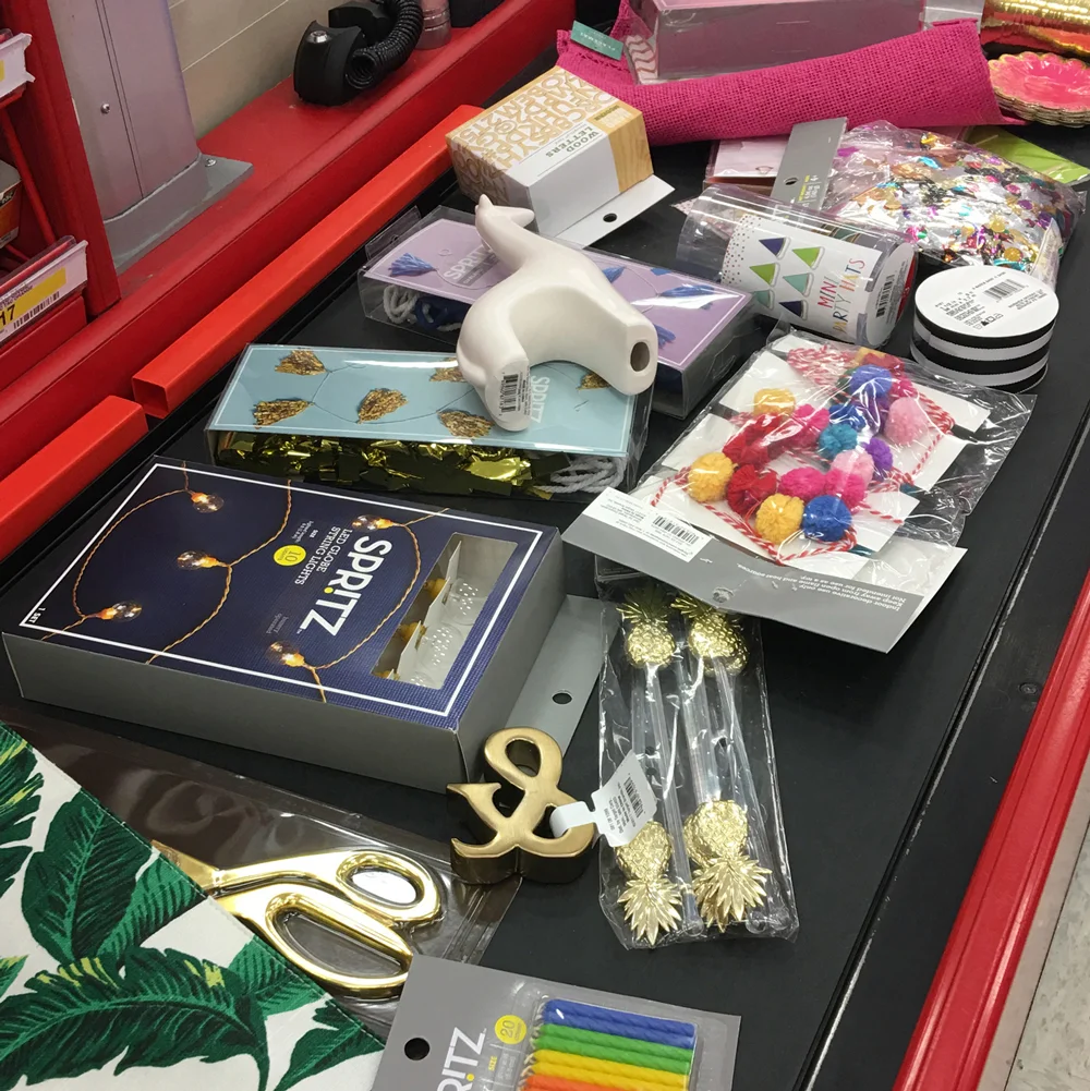 My first stop was loading up on props at Target, of course. Anything and everything glittery, gold and bright made it in to my cart.